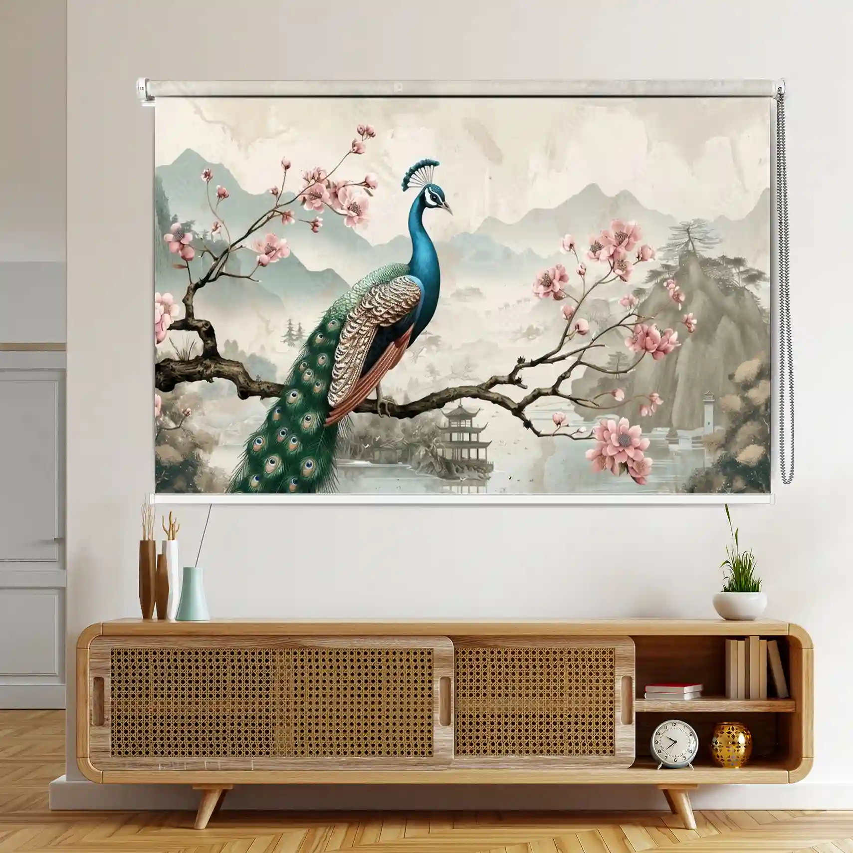 Be the first to review “Artistic Serene Peacock Blossom Landscape Designer Roller Blind”