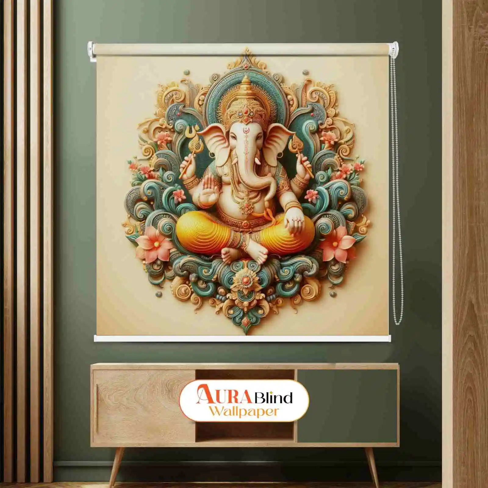 Floral and Artistic Lord Ganpati Roller Blind for Pooja Room