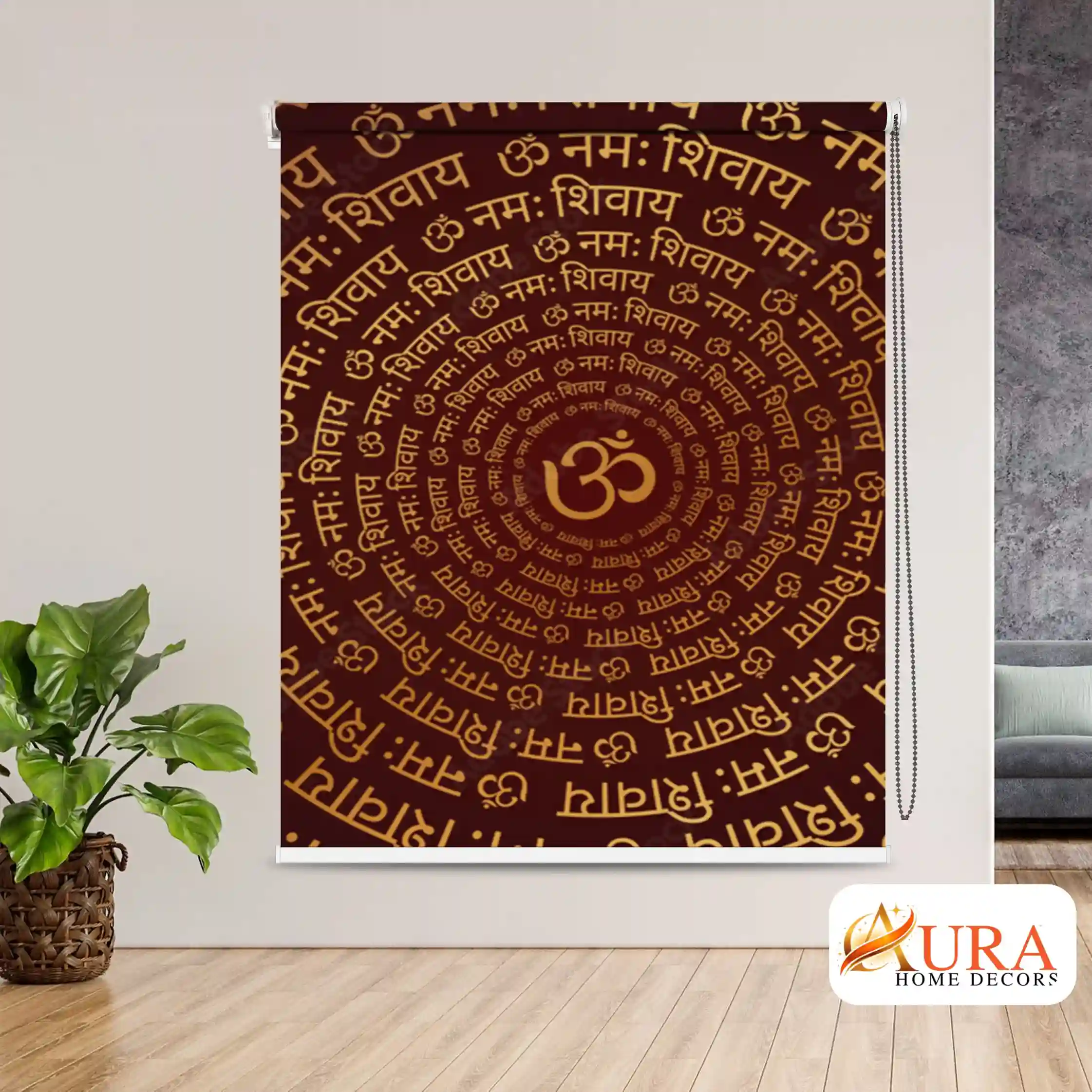 Om Namah Shivaya Spiral Mantra Roller Blind for Pooja Room