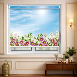Peacock and Mughal Garden Inspired Imperial Palace Courtyard Roller Blind